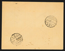 1909, cover sent from Santi Quaranta to Smyrne Gleit Lager hand overprinted Santi 40 on Valona overprinted stamps of 20 para and 10 para pair tied by negatives "Santi Quaranta Poste Italiane" sealsLive Auction
