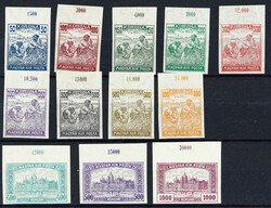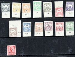 1921 / 24, 50 to 2.000 K. Postal stamps, 13 imperforated values from upper margin mint never hinged, unsigned and mostly perfectLive Auction