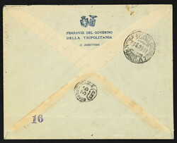 1929, registered cover sent from Tripoli bearing full set of Volta issue tied by "FIERA CAMPIONARIA TRIPOLI" cds sent to Napoli/Italy (Sassone 540 €)