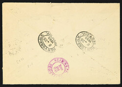 1906, cover sent from Derna to Benghazi via Crete Iceland Gleit Lager 1905 issue pair 20 para tied by bilingual "DERNA" postmark, on reverse Xania, La Canea and Alexandria transit Cds