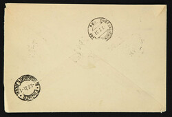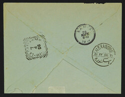 1906, cover sent from Derna to Benghazi via Crete island bearing 1905 issue pair 20 para tied by bilingual "DERNA" postmark, on reverse Xania, La Canea and Alexandria transit cds