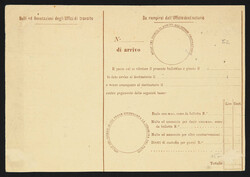 1908, parcel card of 60 cent. used from Tripoli office to Roma bearing white/black "TRIPOLI DI BARBERIA" label and very rare straight line "TRIPOLI DI BARBERIA" cachet