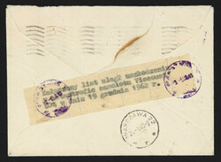 1962, air crash Warsawa, lot plate LVB, distance Brussels - Berlin Schönefeld - Warsawa at the 19.12.1962, letter from jersey city 15.12. Addressed to Warszawa with on the back note list the Polish post, this 3 x used Warszawa with different heavy readable dataLive Auction