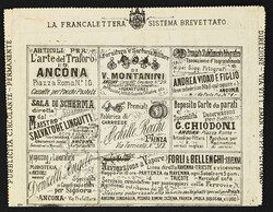 1890, special card letter with advertisement "franca lettera" used from Leghorn to Palaia Gleit Lager 1879 issue 10 c. And same stamp with perforation of "88" tied by numeral postmarks of "14", extremely rare, Sassone 3, cat. 28000 Euro, certificate A. DienaLive Auction